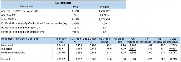 “The strong economic viability of the project, with an After-Tax NPV8% of US$ 1.8 billion, an IRR of 20.77% and the 3.4 year payback period, indicates that not only is it financially robust but it also has the ability to generate positive cash flows in a short period of time. Additionally, the C1 Cast Costs of US$ 1.36/lb for first 8 years of operation put us well within the second quartile of copper producers and supports a rescilient cash flow generation through copper price cycles.