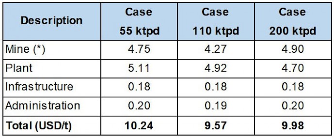 Administration costs include general administration of the Company. Administration cost is estimated at 0.2 USD/t.