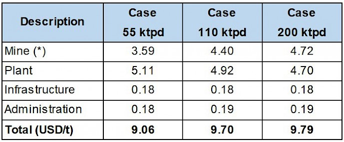 (*) Mine costs include the strip ratio for the LOM